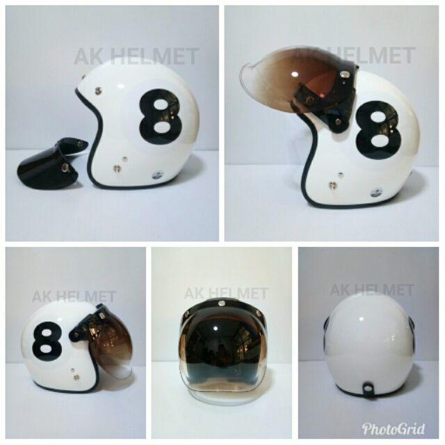 - ชื่อสินค้า หมวกกันน็อคแนววินเทจ ลายเลฃ8. พร้อมชิว Bubbel. สีทูโทนเปิด-ปิดได้ หมวกกันน็อค หมวกกันน็อคเด็ก หมวกกันน็อคผู้ใหญ่ หมวกกันน็อค 3 กระดุม หมวกกันน็อคเต็มใบ หมวกกันน็อคครึ่งใบ ของแท้
